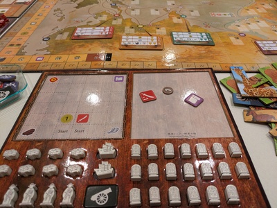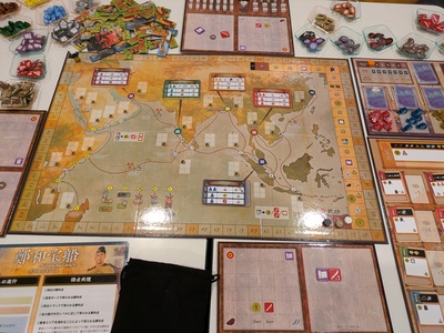 鄭和さんが大航海をした7回の旅程を7ラウンドで示している、歴史系ゲーム。プレイヤーは同じ船の役人で自分が船のルートを決められるタイミングがある。そのタイミングをいつにするかというのを、後ろ盾役人(とか一番強いのは皇帝)で決める。