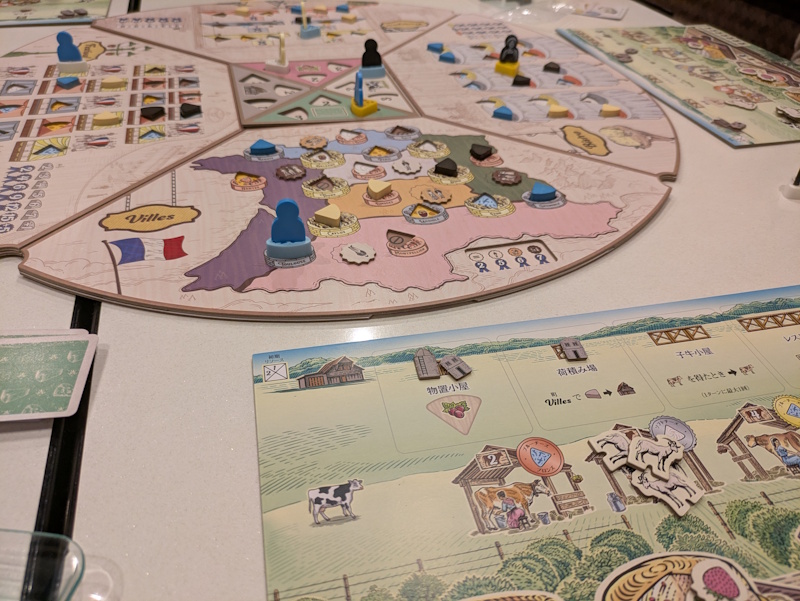 チーズを作ったり影響を取ったりしながら、チーズの覇権を握る的なゲームです。ワーカープレイスメントっぽいけど配置とワーカー返却が特殊でした。