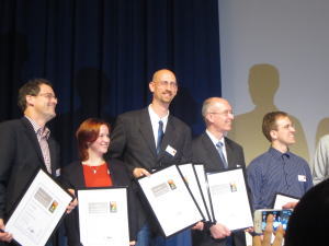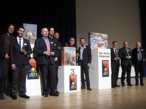 夜はドイツゲーム賞授賞式 授賞式ですが、今年もエッセン市長が登場し、しかも金の羽根の発表を自ら行っていました。