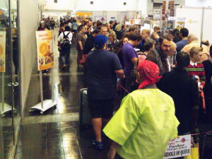 1日目スタート はい、始まりましたエッセンシュピール初日。 開場20分くらい前に現地入りしたのですが、なんかもう開場にお客さんが殺到しています。少し早く開始しちゃったそうです。