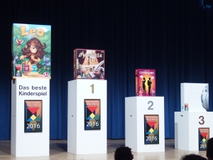 ドイツゲーム賞は10位から上がっていき、最後の1位から3位とキッズ賞はインタビューと受賞用大箱付き。